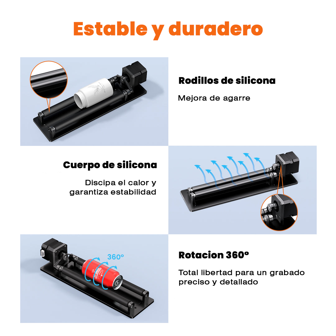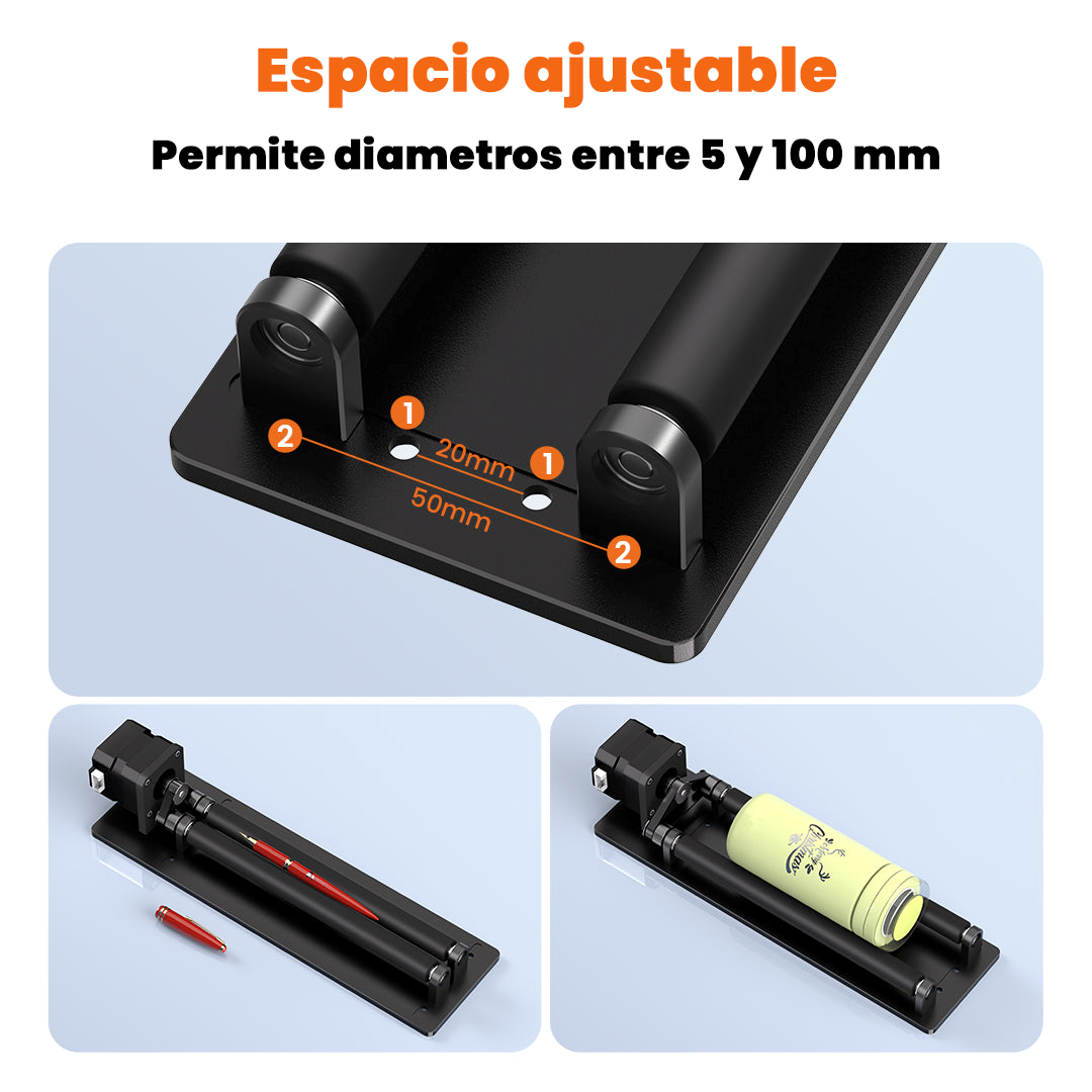 Gracias a su velocidad de grabado de 3000 mm/min y su posición ajustable, este rodillo rotativo se adapta con facilidad a diferentes tamaños y formas, ofreciendo una experiencia de grabado fluida y sin complicaciones.