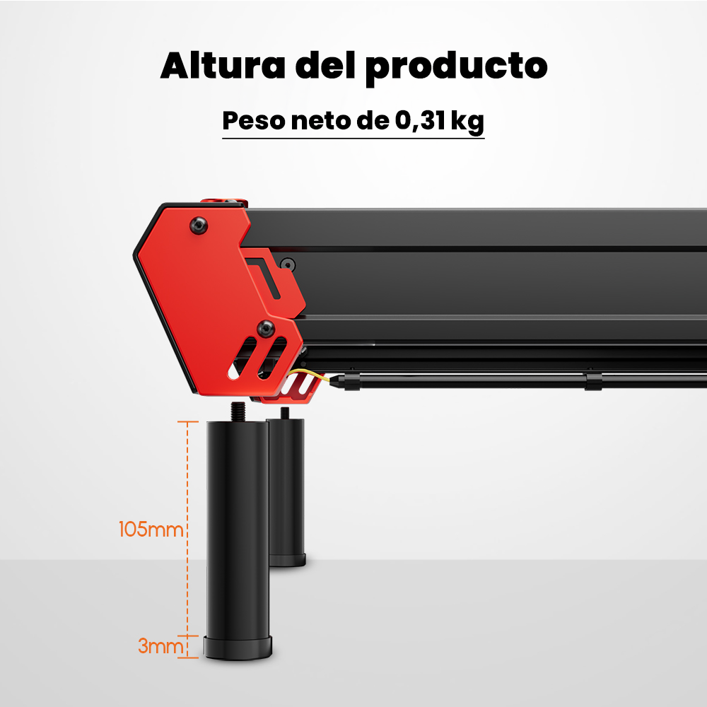 – Altura extra de 100 mm: ideal para grabar objetos altos como patinetas, tablas o piezas de madera.