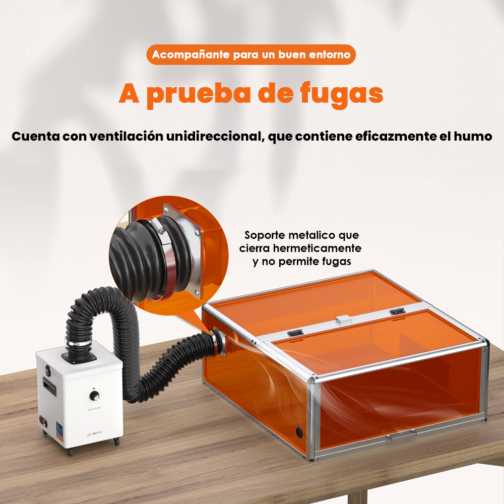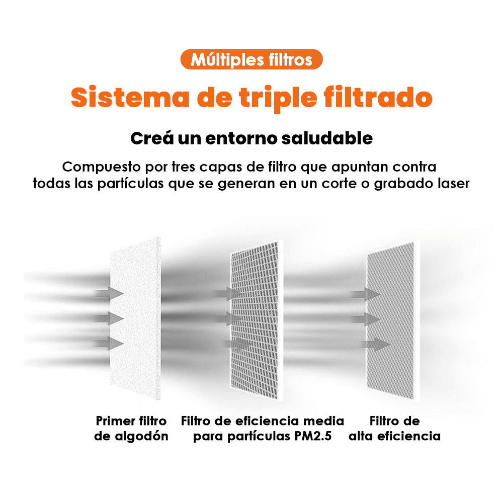 Transformá tu espacio de trabajo con un purificador diseñado para quienes buscan máxima eficiencia, aire limpio y un entorno saludable al operar máquinas láser. Su potencia de succión extraordinaria elimina rápidamente el humo y las partículas en suspensión, permitiendo trabajar con total comodidad y sin contaminación visual ni ambiental.