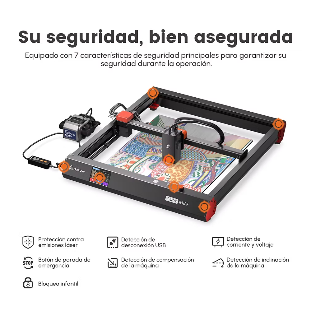La AlgoLaser Alpha MK2 20W es una máquina pensada para los que buscan potencia real y precisión total en cada proyecto. Su láser de 20W de salida real te permite cortar materiales más gruesos, grabar con detalles nítidos y trabajar más rápido que nunca. Ideal para emprendedores, talleres y creadores que quieren llevar sus ideas al siguiente nivel.
