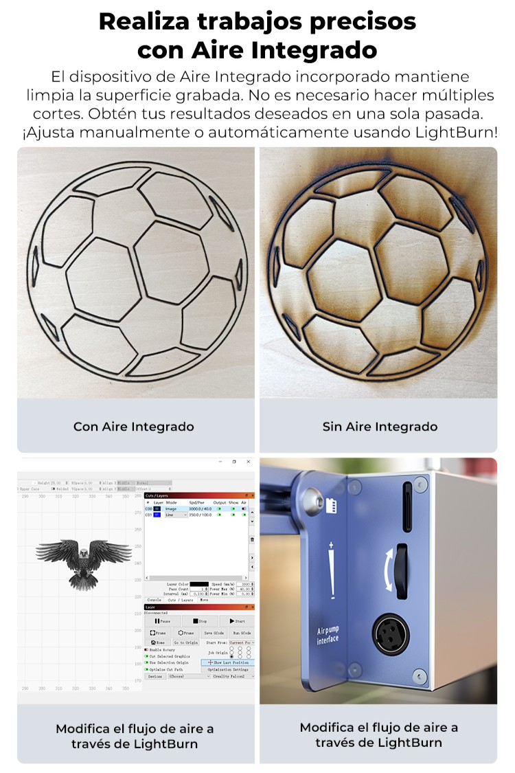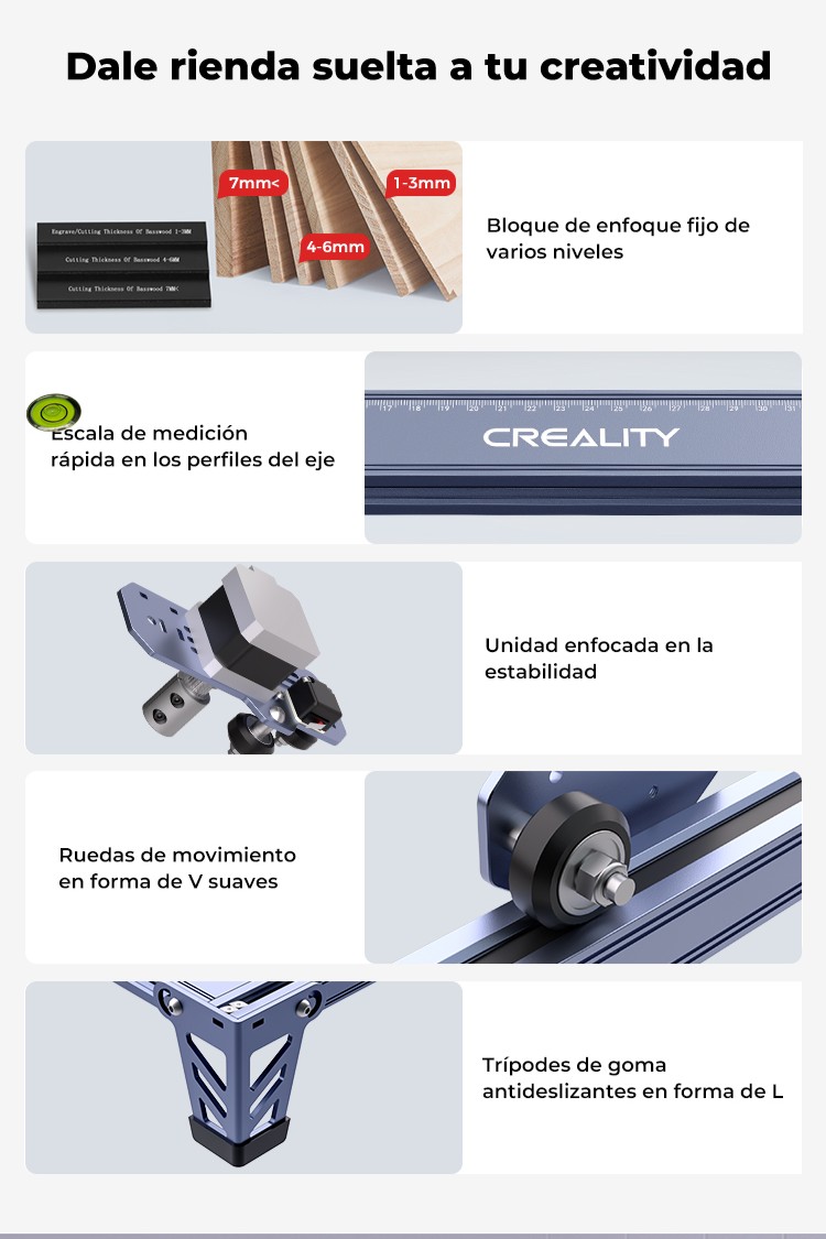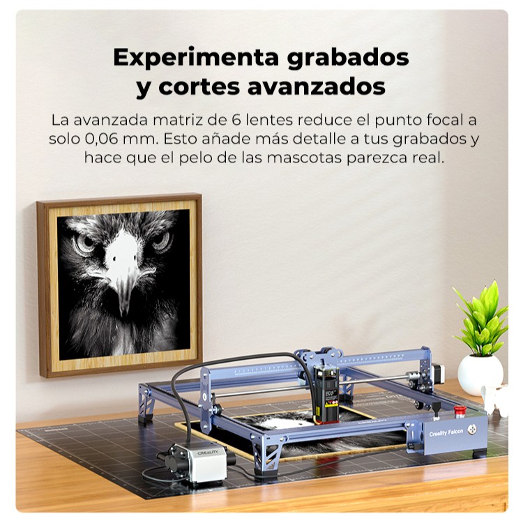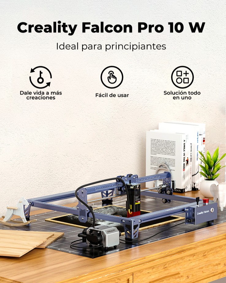 La Creality Falcon Pro 10W es la grabadora láser ideal para quienes buscan resultados profesionales, máxima precisión y un entorno de trabajo seguro. Gracias a su potente láser de 10W, permite grabar y cortar con mayor velocidad y un nivel de detalle superior, optimizando tiempos y logrando acabados limpios en una sola pasada. Su diseño inteligente la convierte en una excelente opción tanto para talleres, emprendimientos como para usuarios exigentes.