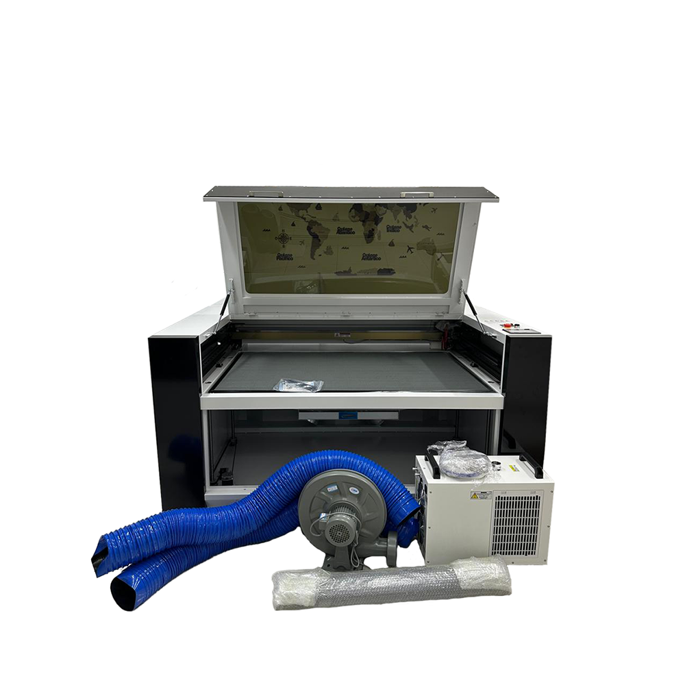 – Incluye extractor de humo y bomba de aire: para mantener el área de trabajo limpia y proteger los componentes ópticos, mejorando la calidad de corte.